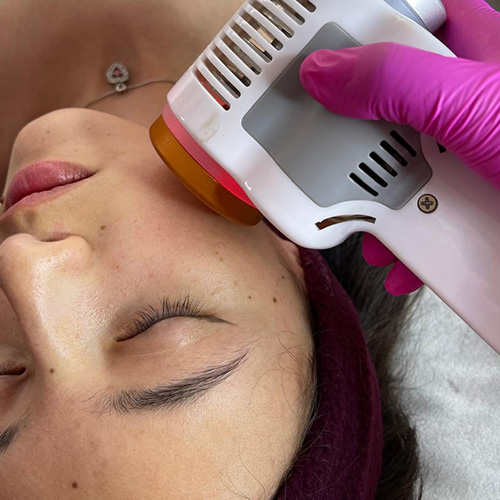Sesión reafirmante, con ondas electromagnéticas de alta frecuencia a través de un cabezal que se pone en contacto con la piel, lo que produce un calentamiento controlado en las diferentes capas de la dermis.